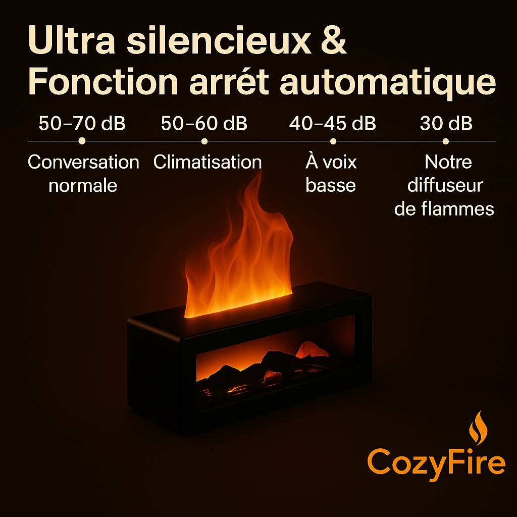 Contrairement aux humidificateurs classiques souvent bruyants, notre diffuseur de flammes vous offre une ambiance apaisante, parfaite pour le sommeil, la lecture ou la méditation.